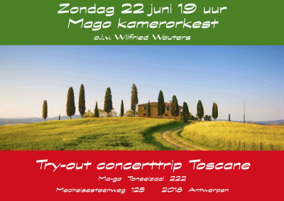Graag nodigen wij je uit voor een bijzonder try-out concert op zondag 22 juni om 19 uur, waarin wij je alvast meenemen op een muzikale reis richting het zonnige Toscane!